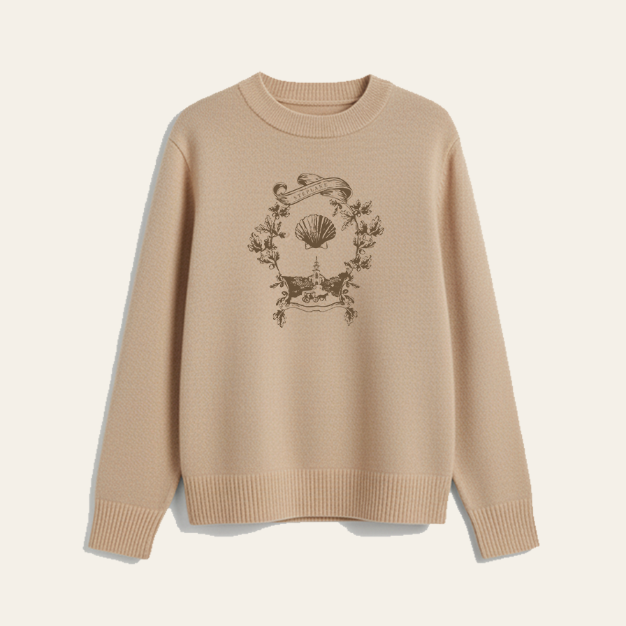 An ode to Nantucket during a time when considered living was the only way of living, Steplane's Crest Crew represents the finer things in life—30 miles at sea. Designed and embroidered on island, this oversized 100% Mongolian cashmere sweater was made for crisp New England days and nights.